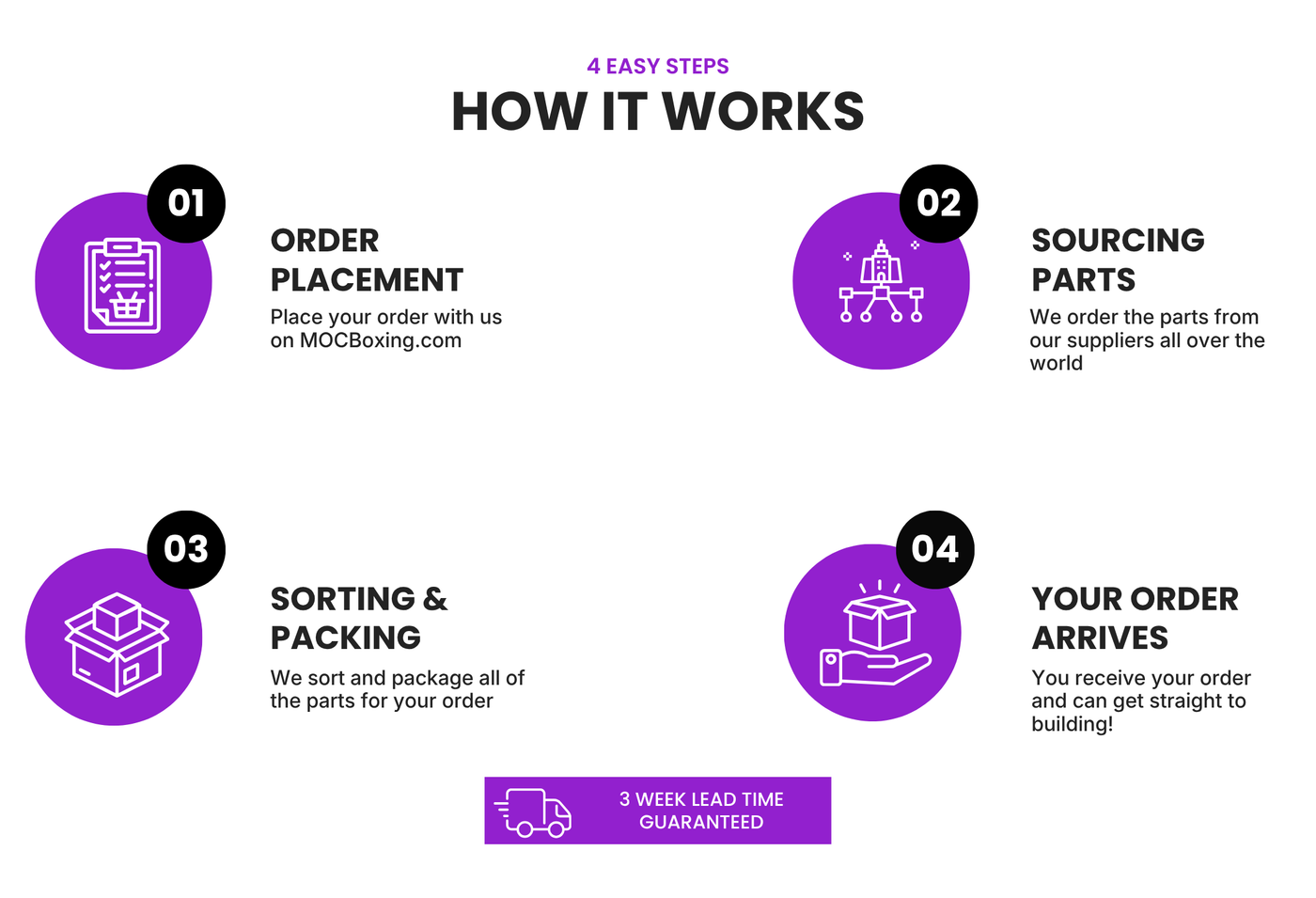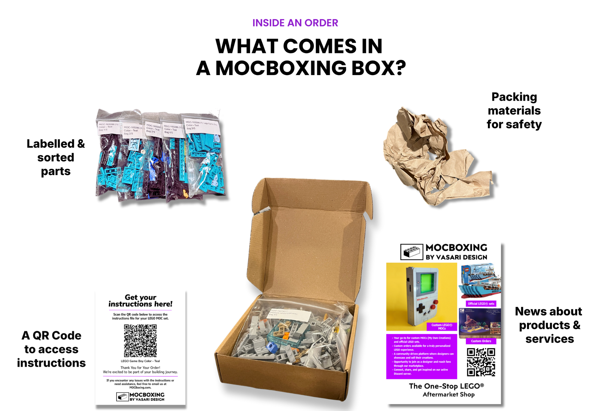Add any MOC to your cart and receive everything in one box — sorted, complete, and ready to build.