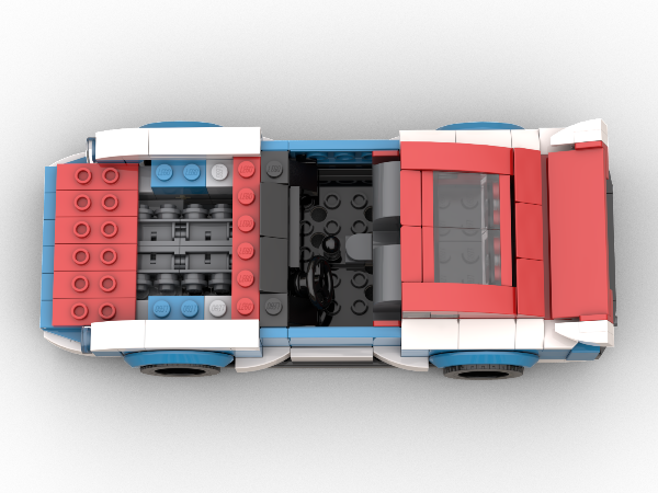 This MOC is made for one minifigure but could easy fit for two. The second seat can be installed by replacing the gas bottle. The design of the cockpit is orientated to the original car.