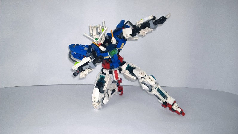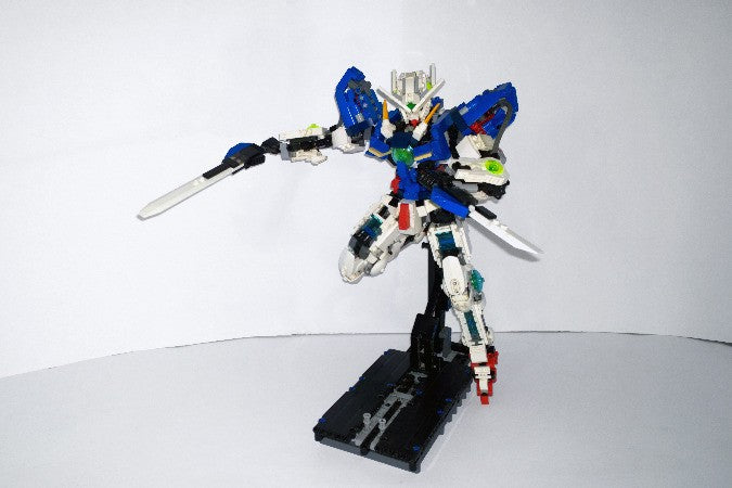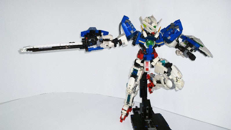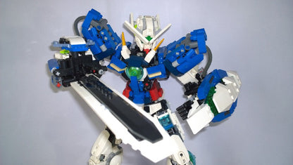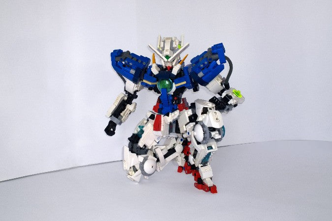 The main gundam from my favorite series Kidou Senshi Gundam Double 0 with the unique and modern design. Being a melee combat gundam with swords-equipment, the wide range of articulation is priority for this MOC.