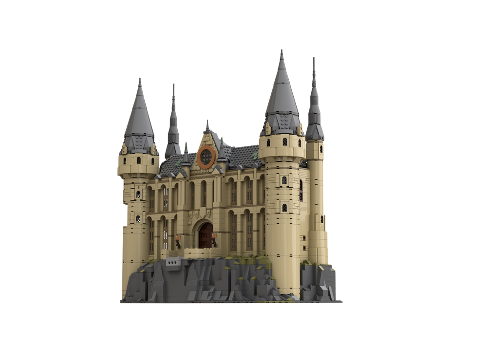 This is the latest expansion of my huge-but-still-play-scale modular Hogwarts School!! The Viaduct Entrance Hall is a very elegant building which changed a fair amount over the course of the 8 potter movies - going from having stubby conical roofs at the beginning, to being much more gothic and elongated by the end, and then eventually when the Viaduct Bridge was moved in the last movie, it became untethered from the rest of the castle! My version depicts it from around movies 4-6 where it had the look most people remember, and was still connected to the Viaduct! (this is the version LEGO also went with for most of their modern castle depictions).
