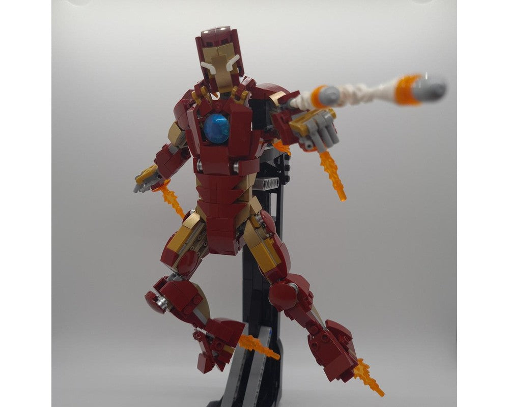Iron Man suit - not meant to be any suit in particular. Comes with everything pictured including the stand!