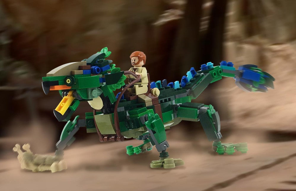 This recreation of Boga the Varactyl, Obi-Wan's faithful mount during his time on Utapau, is here to accompany your AT-TE set! Like my previous Crab Droid MOC I wanted to continue fleshing out the siege on Utapau with this minifigure scale Boga. She is highly posable and isn't cartoonishly oversized when placed next to the AT-TE.