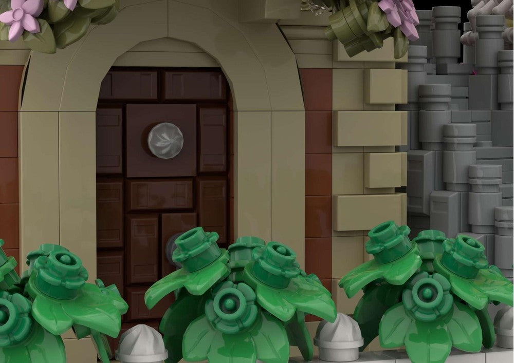 This is my most complex, challenging, and detailed MOC yet! The build sits on a 32x32 baseplate with two separate modular buildings, an angled staircase, a small archway, and an endless amount of plants!