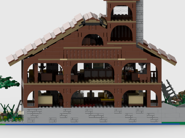 The model is inspired by Mohonk Mountain House on the Hudson River.