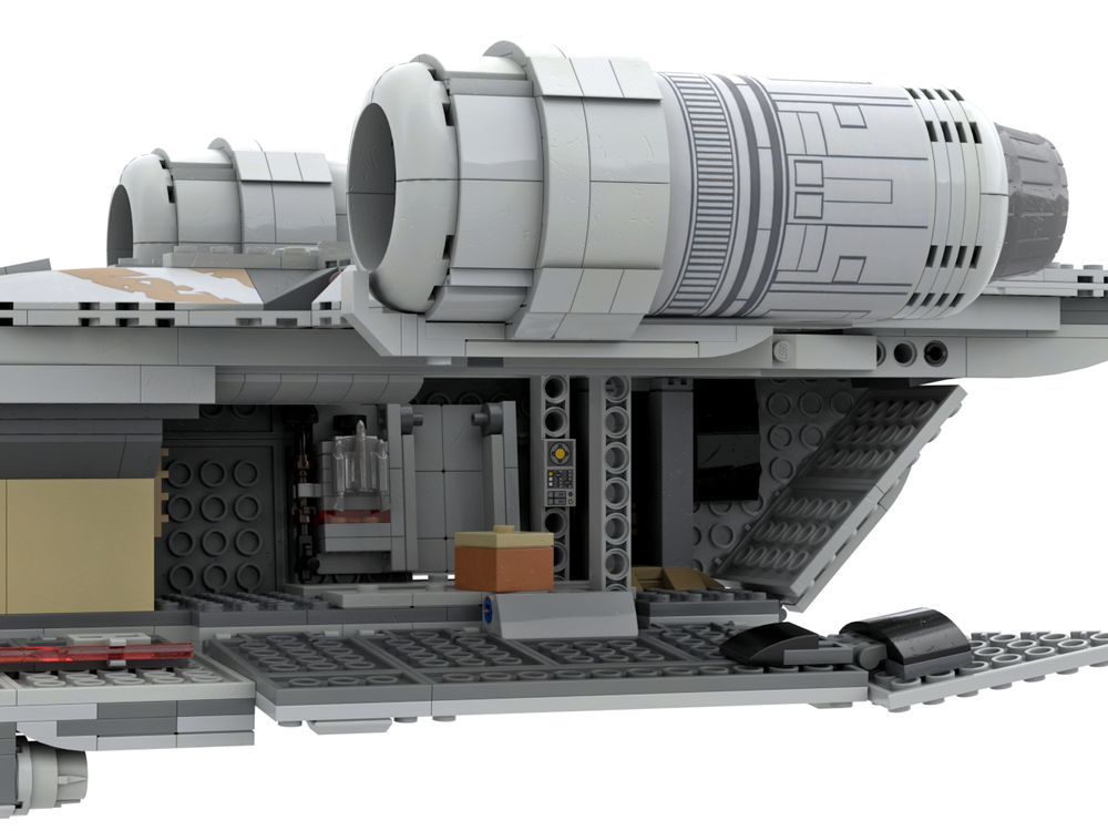 Almost the entire model is redesigned in order to make it more accurate to the show version. The main hull is thinner, but the inner structure is simplified, giving better access and a lot of interior space. The subassembly on top of the cockpit and the escape pod (which still fits a minifigure) can be easily removed to give better access from the top, but will not fall off even if you turn the model upside down.
