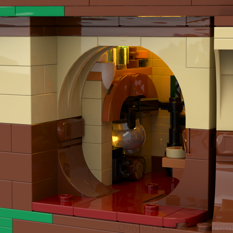 a bag end expansion that build on the 'closed back/ additional rooms' moc - it adds the above described bedroom to the front of the bag end and it adds a kitchen to the back