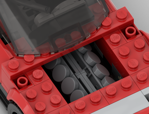 This MOC is made for one minifigure but could easy fit for two. The second seat can be installed by replacing the gas bottle. The design of the cockpit is orientated to the original car.